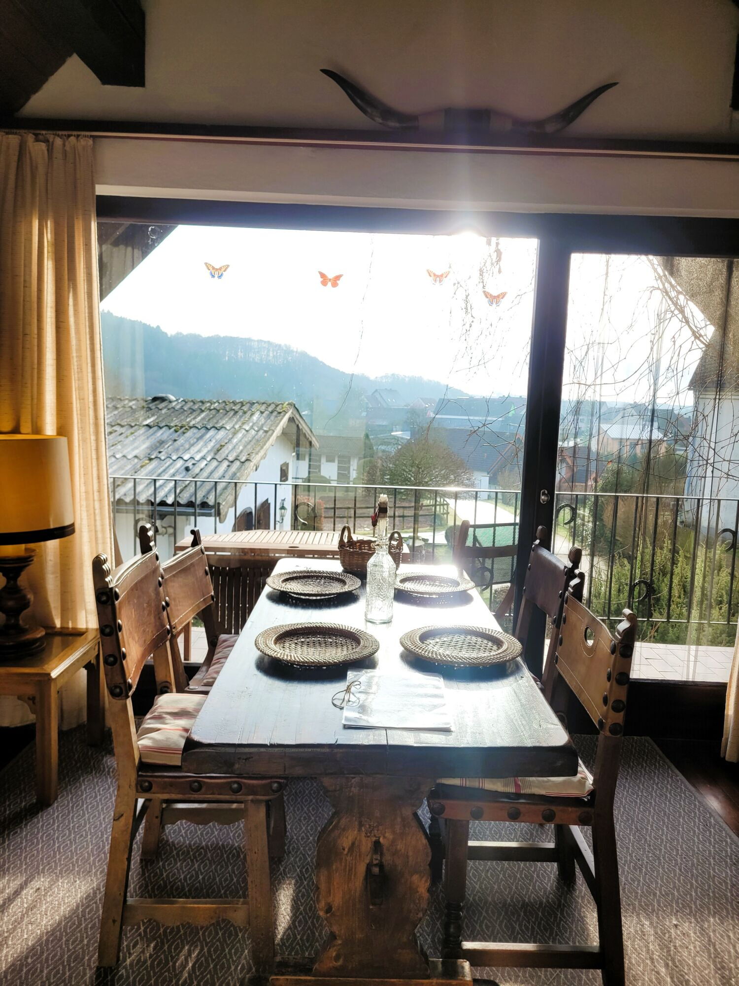 Die Wohnung ist liebevoll ausgestattet, der Blick geht auf das Gutsgeschehen und in das Wiesental.